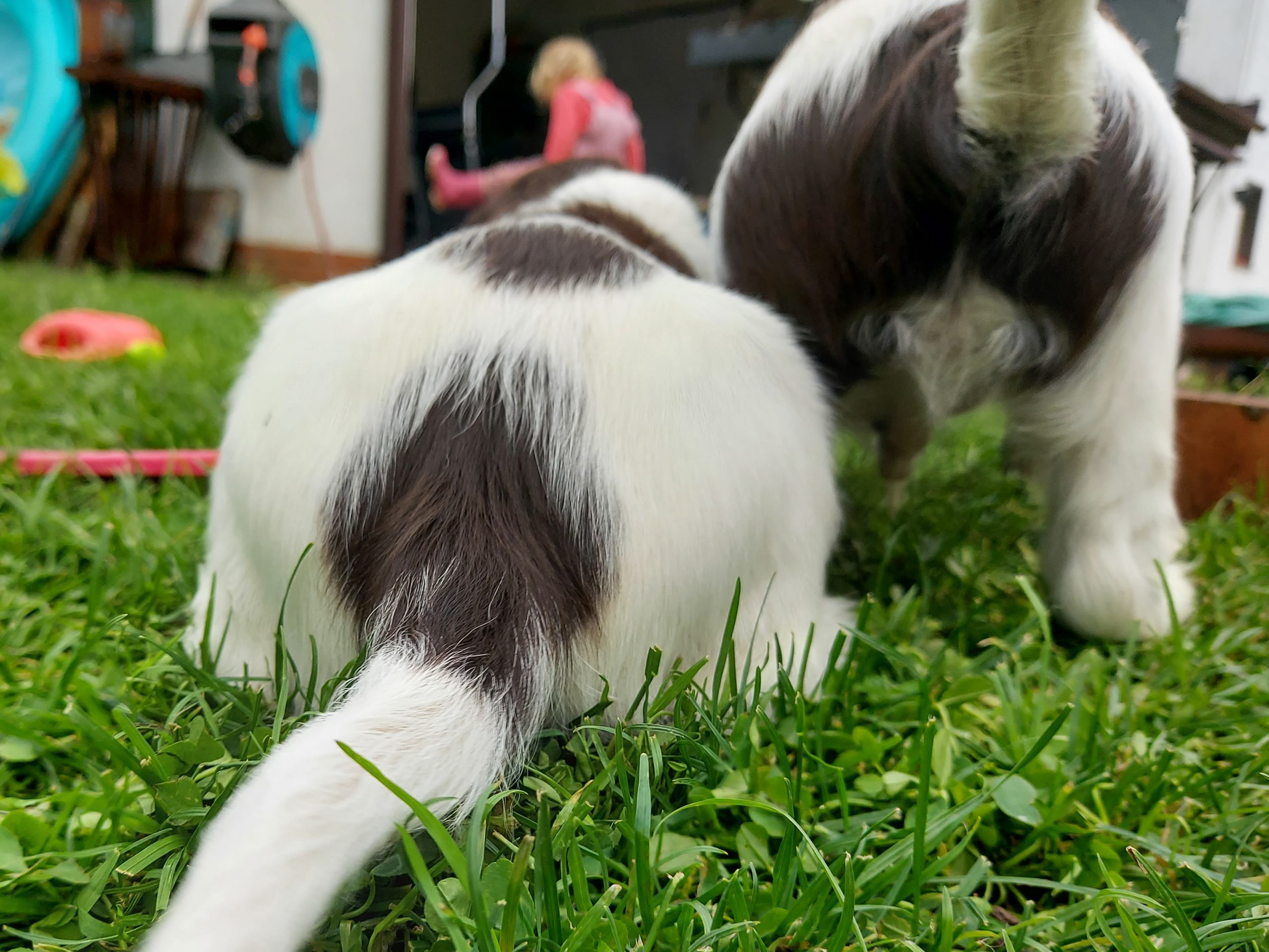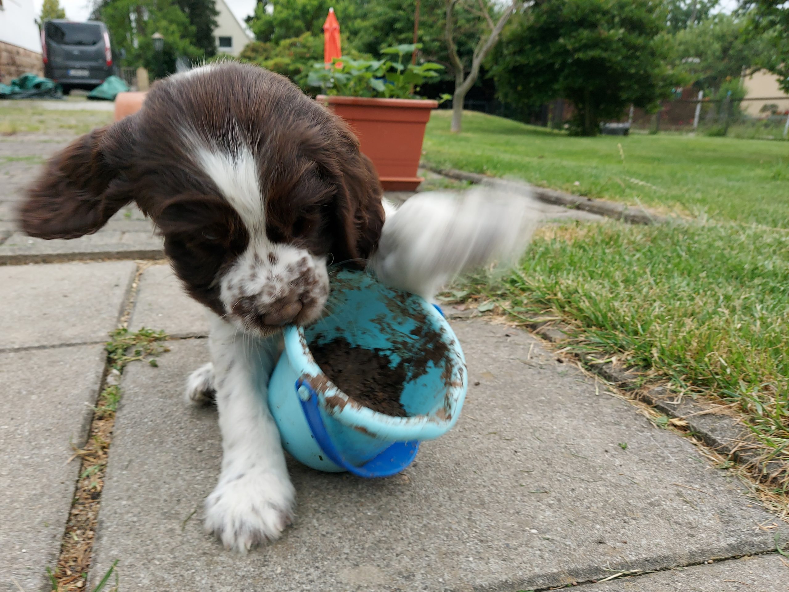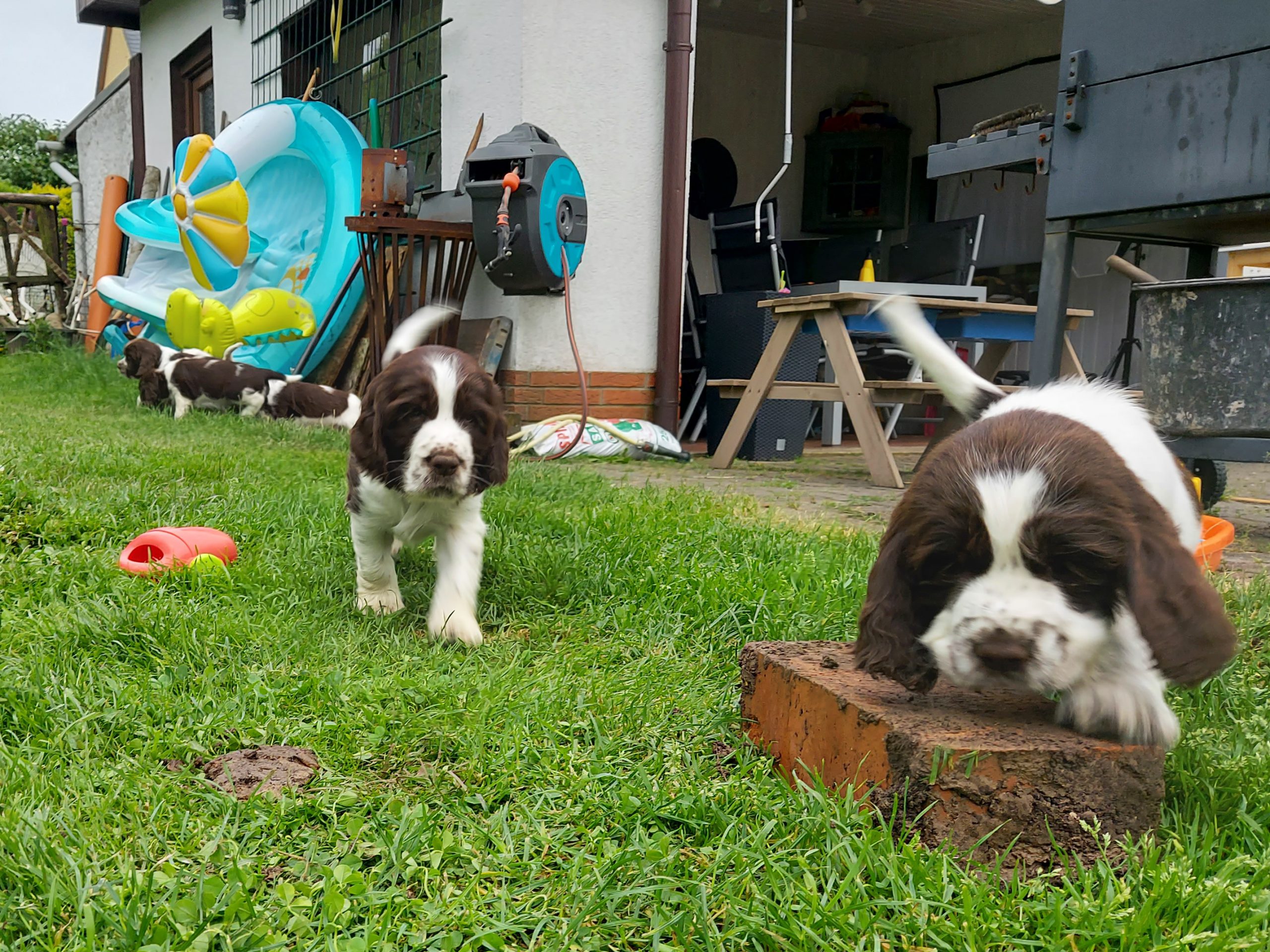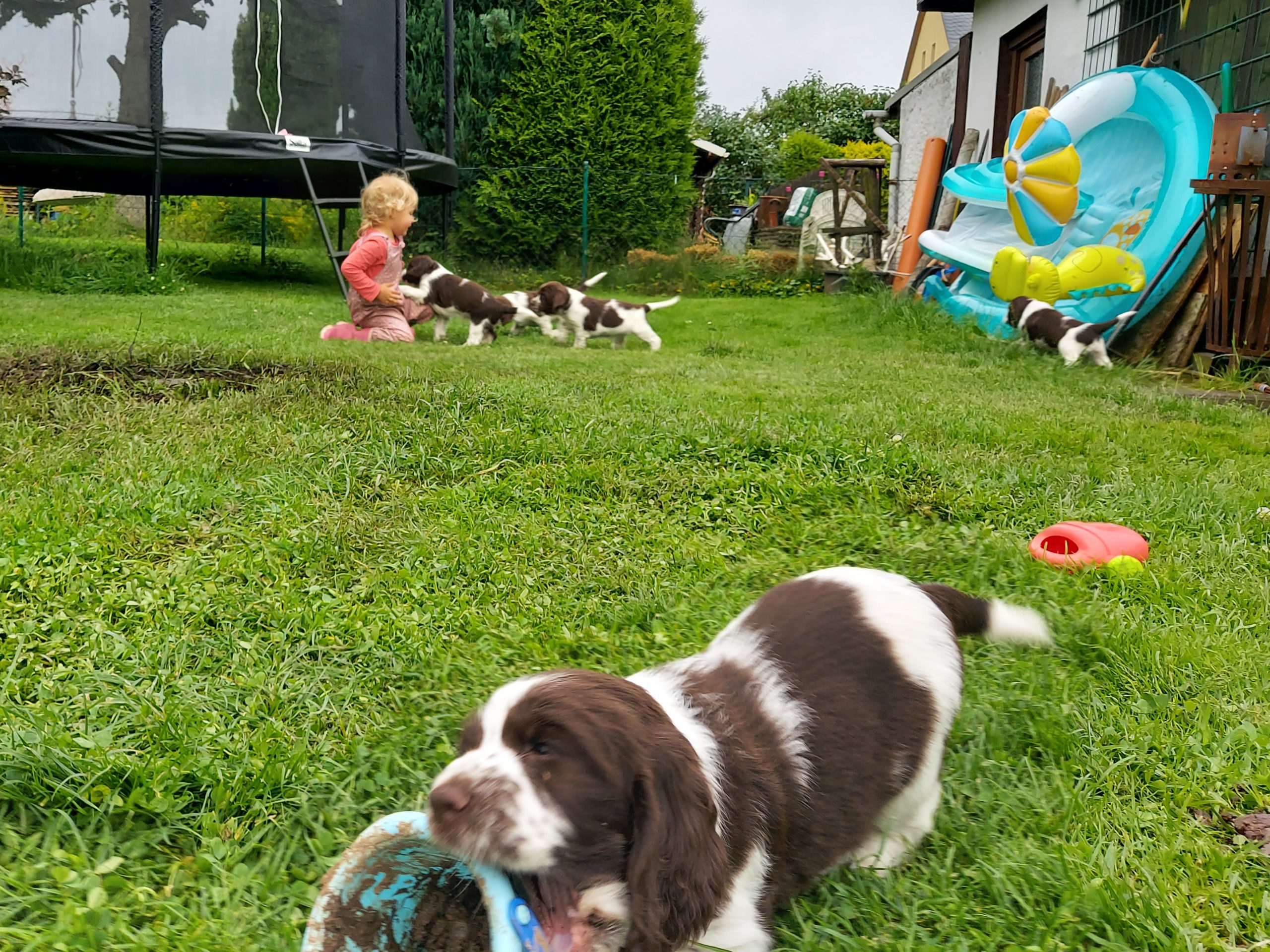 Unser Alltag hier ist super eingespielt. Die Zwerge verbringen ganz viel Zeit draußen, wir schmusen viel und Leni ist der liebste Spielpartner. Geduldig und ganz hart im Nehmen erträgt sie die vielen kleinen spitzen Welpenzähne.
