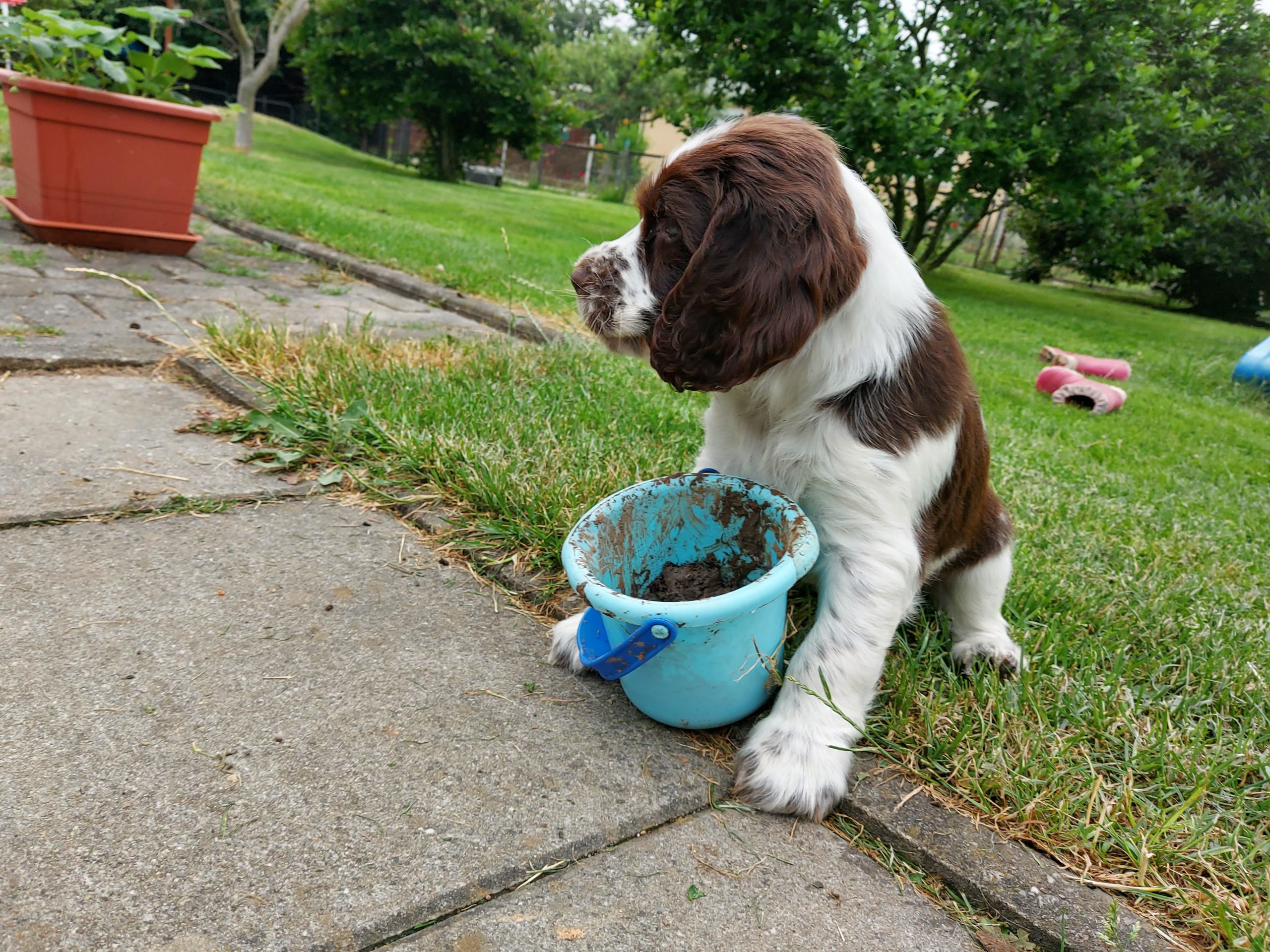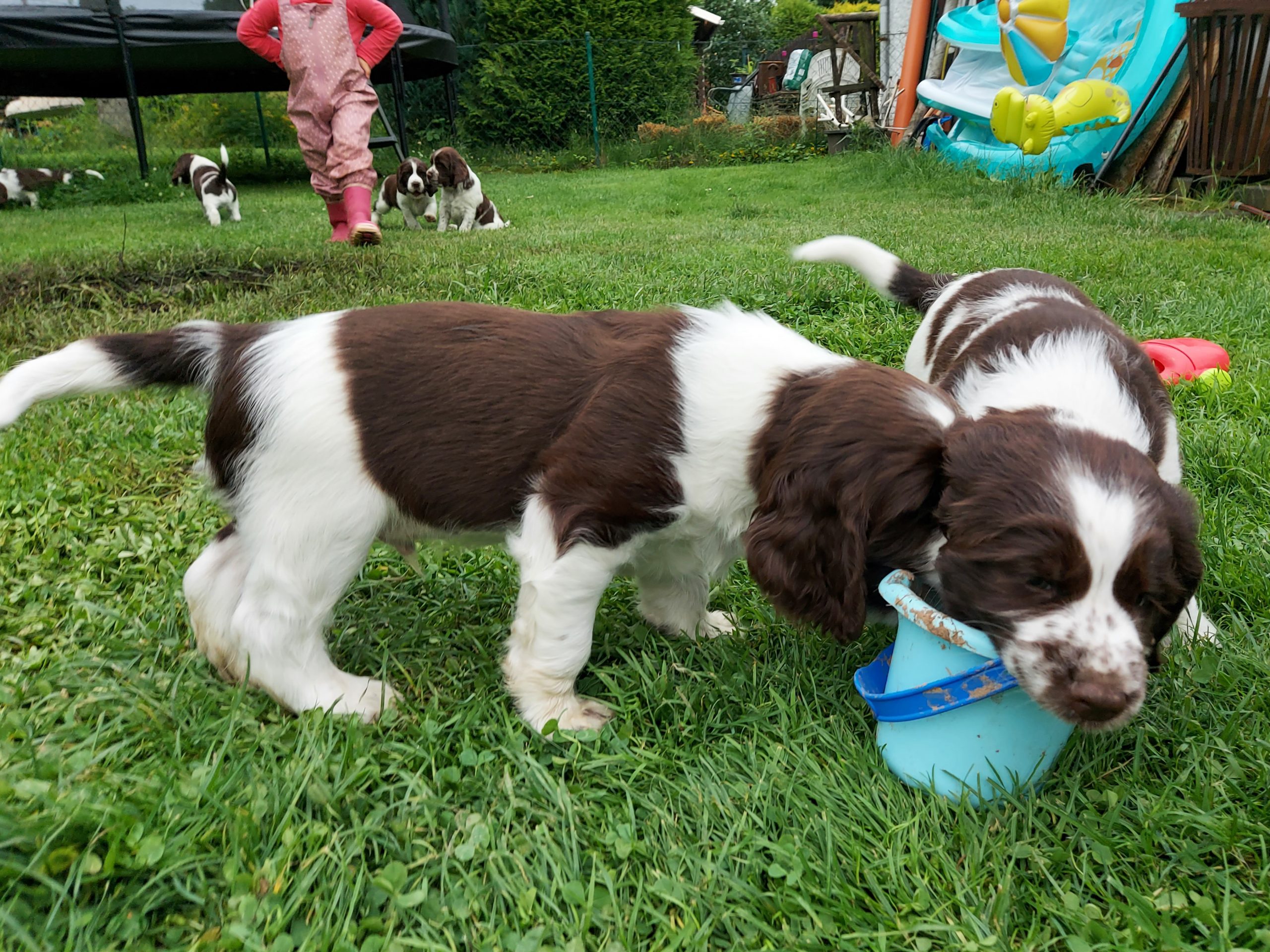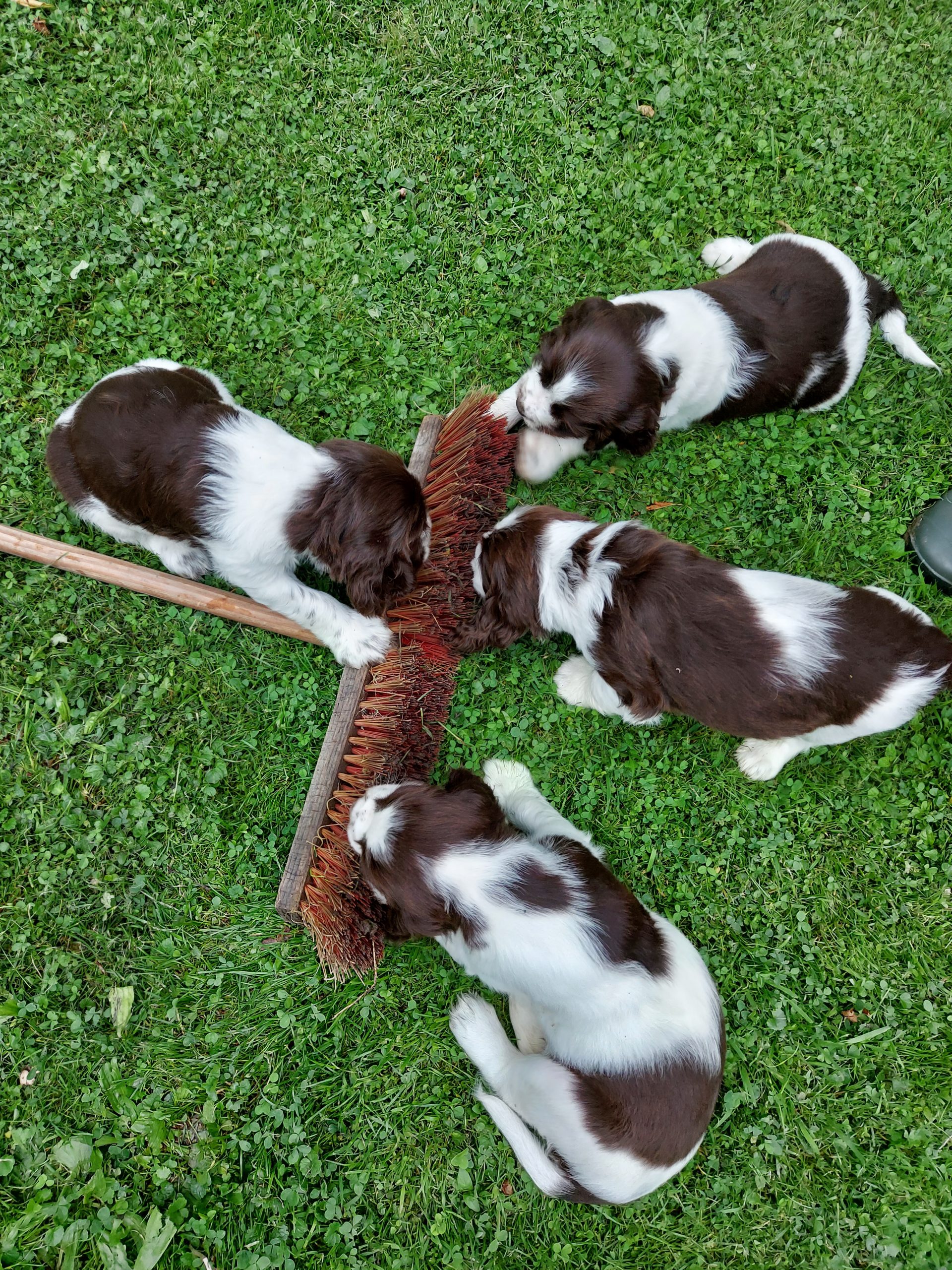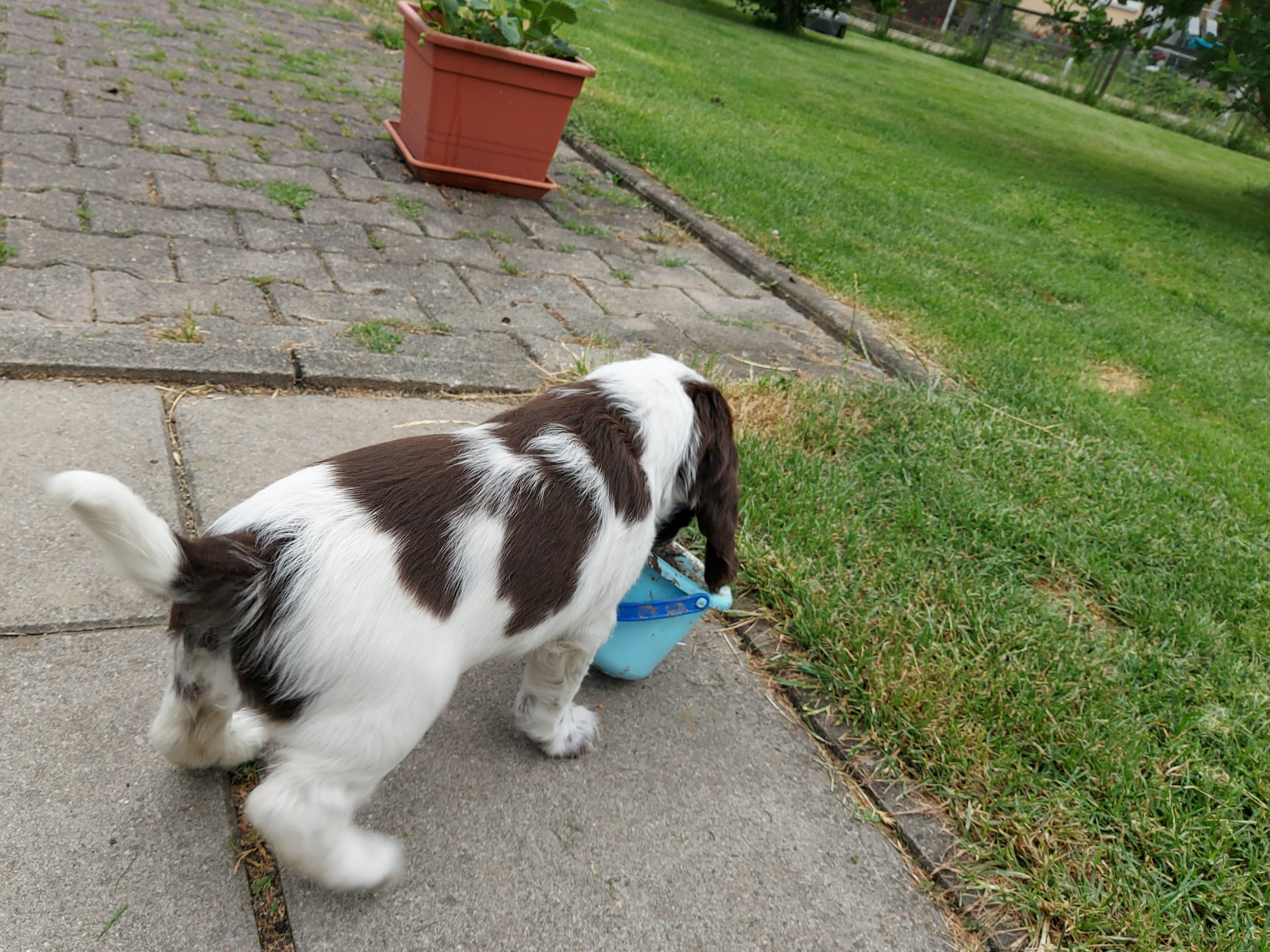 Unser Alltag hier ist super eingespielt. Die Zwerge verbringen ganz viel Zeit draußen, wir schmusen viel und Leni ist der liebste Spielpartner. Geduldig und ganz hart im Nehmen erträgt sie die vielen kleinen spitzen Welpenzähne.